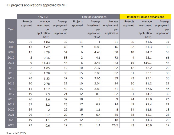 The 22 new FDI projects involves an average investment of €600,000, and will create an average of 12 jobs each.